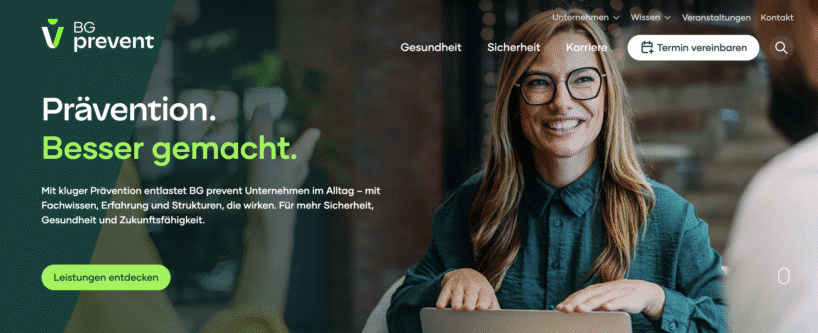 BG prevent zeichnet sich durch ein ganzheitliches Beratungs- und Betreuungskonzept aus, das Unternehmen bei der praxisnahen Umsetzung gesetzlicher Arbeitsschutzstandards und dem Erhalt der Mitarbeitergesundheit unterstützt. Dank eines bundesweiten Netzwerks und spezialisierter Expertenteams profitieren besonders Firmen mit komplexen Präventionsanforderungen von zuverlässigen, qualitativ hochwertigen Lösungen, die nachhaltig für mehr Sicherheit, Compliance und langfristigen Unternehmenserfolg sorgen.